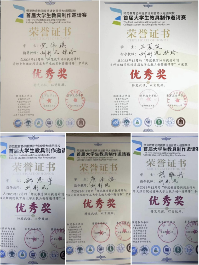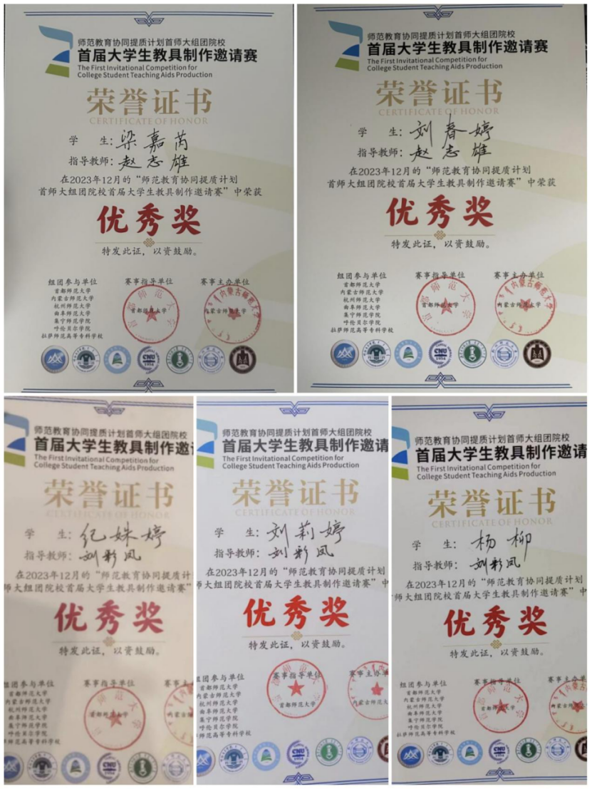 2023年12月12日,我院10名学生携带4件实物教具作品,参加了师范教育协同提质计划首都师范大学组团院校首届大学生教具制作邀请赛。本次大赛由首都师范大学牵头、指导和支持,内蒙古师范大学发起和主办,七所组团高校共同参与。本次大赛我院地理科学专业在校的三个年级,共55人参与,提交了27件教具作品,其中进入决赛作品4件,4件作品获得了优秀奖。
