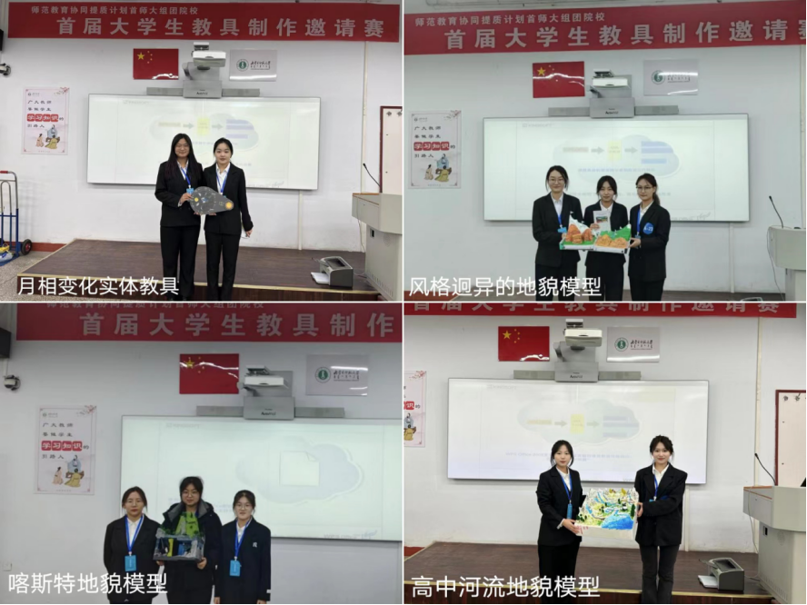 通过参加比赛,开阔了学生的视野,增强了我院师范生的实践能力、团队协作能力,同时也找到了差距与不足,促进了理论教学与实践应用的有机结合,为今后师范生地理教具制作积累了宝贵的经验。