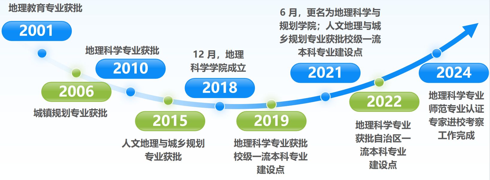 地理科学与规划学院自2018年底成立以来,始终秉承“厚德笃行、求实勤奋”的院训,致力于培养“学用结合、知行统一、理念先进、敢于担当”的未来教育的引领者。目前,学院有地理科学和人文地理与城乡规划两个专业,地理科学专业为自治区级一流本科专业建设点,人文地理与城乡规划专业为校级一流专业本科专业建设点、校级转型试点专业。