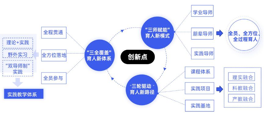 地理科学专业面向岗位需求制定教育实践课程目标,构建“三维(基础认知性、专业应用性、综合创新性)三习(见习、实习、研习)”教师教育实践教学体系。实施“导师引路、朋辈引航”的“三习”实践模式。充分利用高校和中学在师范生培养中各自的独特优势,形成了“高校—校内导师—师范生、中学—中学导师—师范生”双线联动机制,共同参与学生的培养。