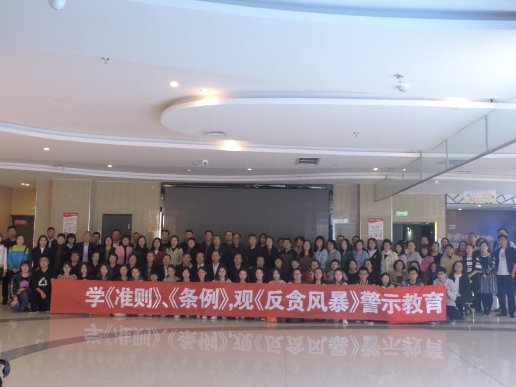 工会全体党员与纪检委、科研设备处、经济与管理学院、文学院、现代服务学院、外国语学院、政史学院师生党员,于9月20日下午2点,在维多利电影院联合举行“学《准则》、《条例》,观《反贪风暴》警示教育” 。