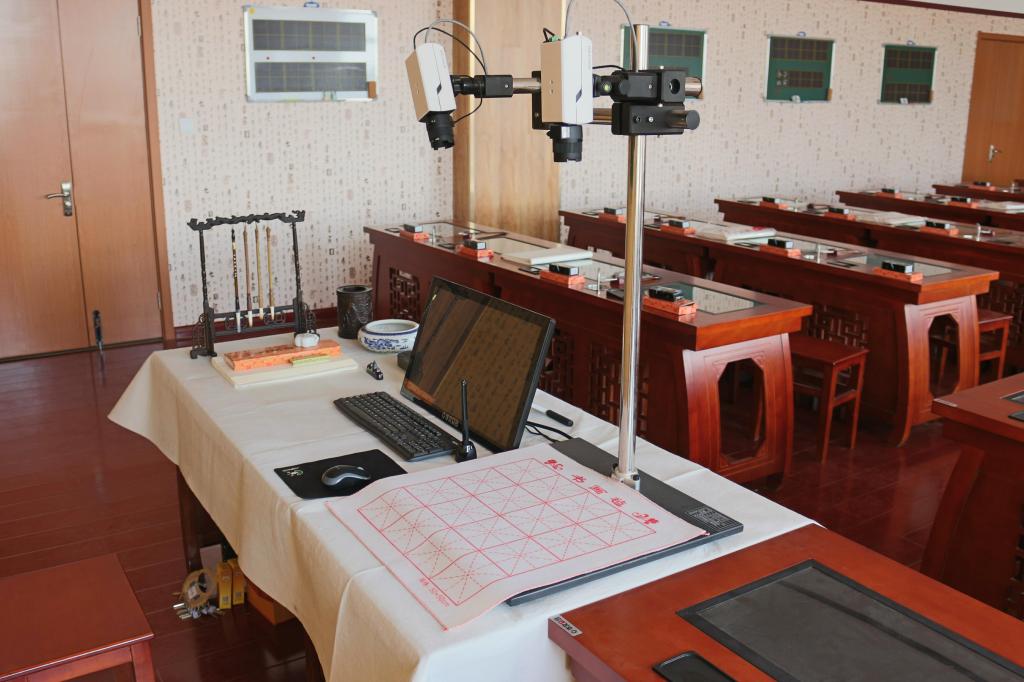 数字书法教室是一种将智能硬件、数字交互等新技术与传统书法相结合的现代化书法教室。和传统书法教室相比,数字书法教室融入很多现代科技元素。比如 引入智能硬件、数字交互等新技术的同时,完整保留笔墨纸砚的精髓,实现数字科技与书法传统的完美融合。数字书法教学系统不仅能辅助教师教学,更能让学生自主临摹、学习多种书体,同时还能通过个人学习端软件,学生们自主学习、练习书法,实现了统一授课与自主学习相结合,大大提高书法教学效果。