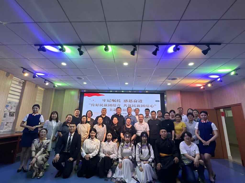 为全面贯彻落实习近平总书记关于加强和改进民族工作的重要思想,推动“民族政策宣传月”活动走深走实,进一步铸牢中华民族共同体意识,深化民族团结进步教育,营造良好的民族氛围,5月23日下午,我部门联合党委宣传部、党委统战部、工会、教师工作部(人事处)、科技处、离退休人员工作处党支部、现代服务学院党总支开展以了牢记嘱托 感恩奋进—“传好民族团结音,共筑民族团结心”为主题的党日活动。