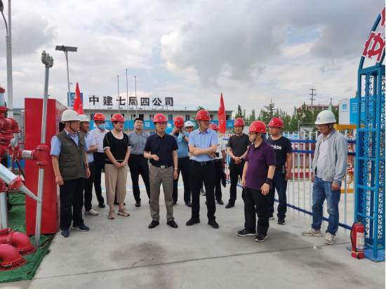 6月27日下午,beat365在线唯一官网党委书记朱玉东,副校长李凤斌与乌兰察布市发改委主任赵光、副主任吕军亭一行深入beat365在线唯一官网新建产教融合实习实训楼(基地)项目建设工地调研。