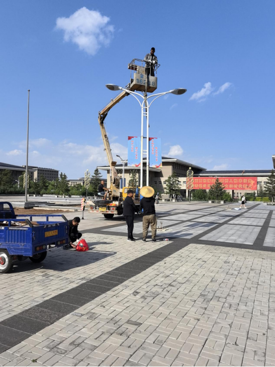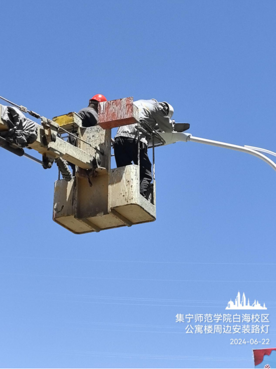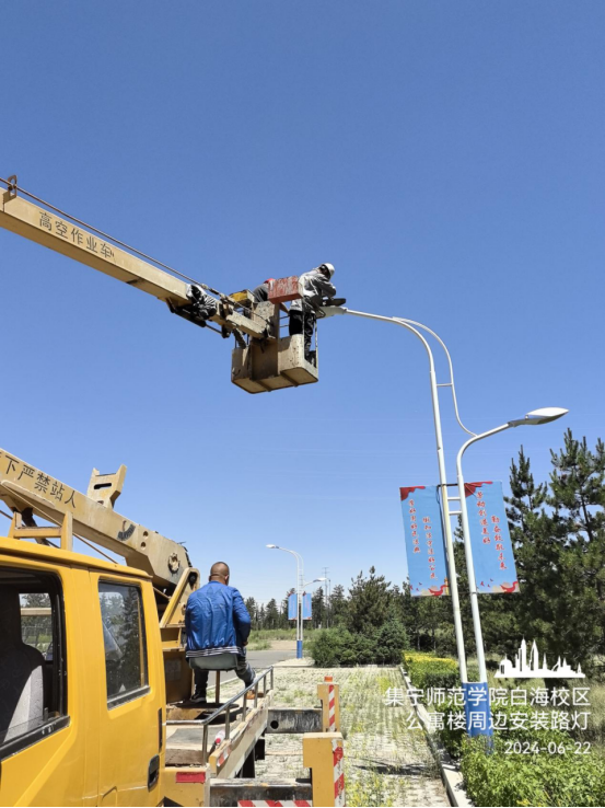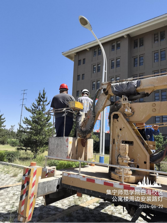 白海校区学生餐厅前广场拆除路灯安装投光灯