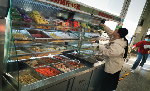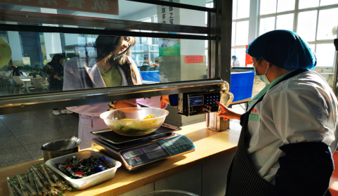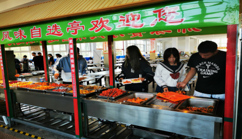 四、在售饭窗口,根据学生需求,为学生提供小份菜,半份菜、自选称重售饭模式,师生可按需聚餐购餐。