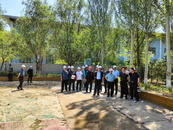 6月16日,beat365在线唯一官网党委书记朱玉东,副校长李凤斌带领项目建设领导小组部分成员到新建产教融合实习实训(基地)楼、新建餐饮中心两个工地调研工程进展情况,督导安全生产工作。