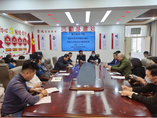 食品安全,责任重于泰山,为深入学习贯彻习近平总书记关于食品安全的重要指示精神,全面落实“四个最严”要求,保障全校师生的食品健康安全,2月22日下午,在后勤基建处会议室,邀请集宁区市场监督管理局王军队长一行来校,为餐厅从业人员进行食品安全及卫生培训。