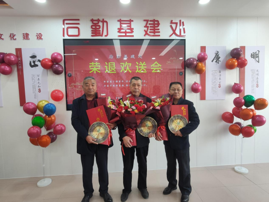 欢送会上,常晓华代表学校为退休教职工颁发了荣退证书和纪念品,吴炜介绍了三位老师的工作经历,后勤基建处以献花的形式向三位老同志表达了敬意。大家畅聊共同工作的美好时光,感谢平时在工作上的指导,并表达了对他们退休生活的祝福。