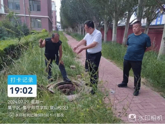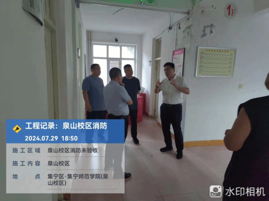拓俊杰还到泉山校区浴池施工工地检查,就浴池外墙涂料施工,喷淋系统弱电布线,计费系统平台接入等工作详细规划,现场办公解决难题。