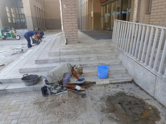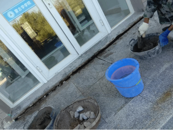 8月26日,后勤基建处维修白海校区音乐学院和蒙古学学院台阶。