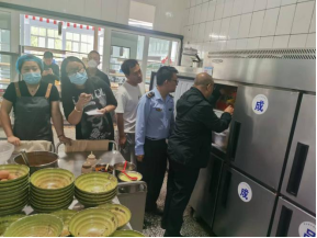 虎山中队张志军队长带队先后到学校餐厅、超市、冷饮店、水果店等对进货流程、索证索票、食品安全、餐厨货物摆放、环境卫生、消防等情况进行了认真全面地检查,并就检查中发现的问题提出整改意见。