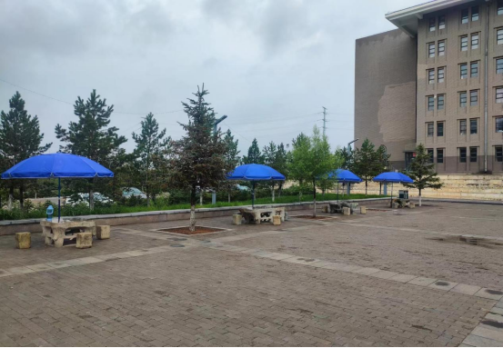 餐饮中心在餐厅内外通道处提供免费的水果、矿泉水、绿豆汤等解暑饮品,缓解高温下的炎热与疲累,为毕业生送“清凉”。