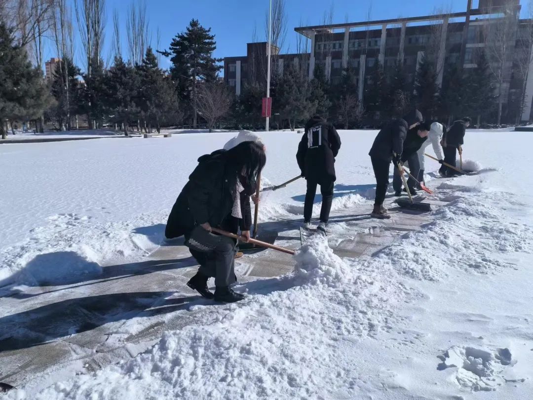 心中有爱则不畏严寒,信念如炬必消融冰雪。此次铲雪除冰活动,党员们凝聚共识,振奋精神,以高度的使命感和责任感,担当作为、团结协作,不畏严寒、全力清扫,用最朴素的方式履行一名共产党员的职责,用最诚挚的热情践行“为群众办实事”的准则,为广大师生开辟安全通道,为银装素裹的校园带来丝丝温暖。