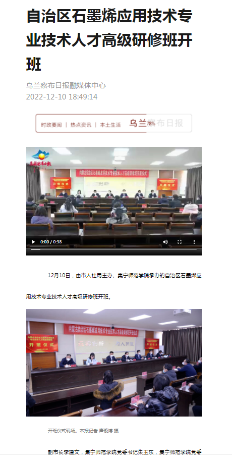 本次高级研修班的举办受到乌兰察布市电视台、乌兰察布日报融媒体中心等各界媒体的广泛关注。这次培训不仅拓宽了beat365教师的科研视野,同时也搭建了beat365与业界专家们联系和沟通的平台,专家们纷纷表示,今后将大力支持beat365在石墨烯领域的科学研究,助推beat365在产业学院建设、服务地方经济发展等方面创造更多成果。