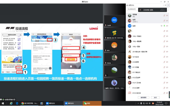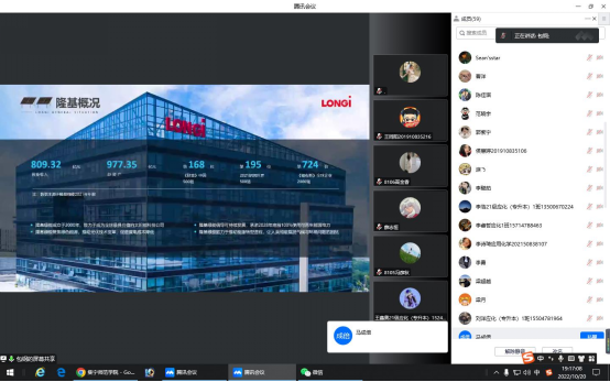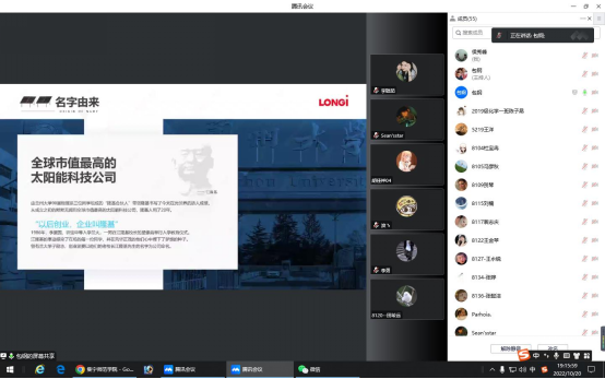 2022年10月20日晚上,化学与化工学院与隆基绿科技股份有服公通过腾讯会议共同举办校园专场招聘会,学院领导班子高度重视,党总支副书记侯秀峰、班主任范晓宇、2023届毕业生,隆基绿科技股份有服公参与本次招聘会。
