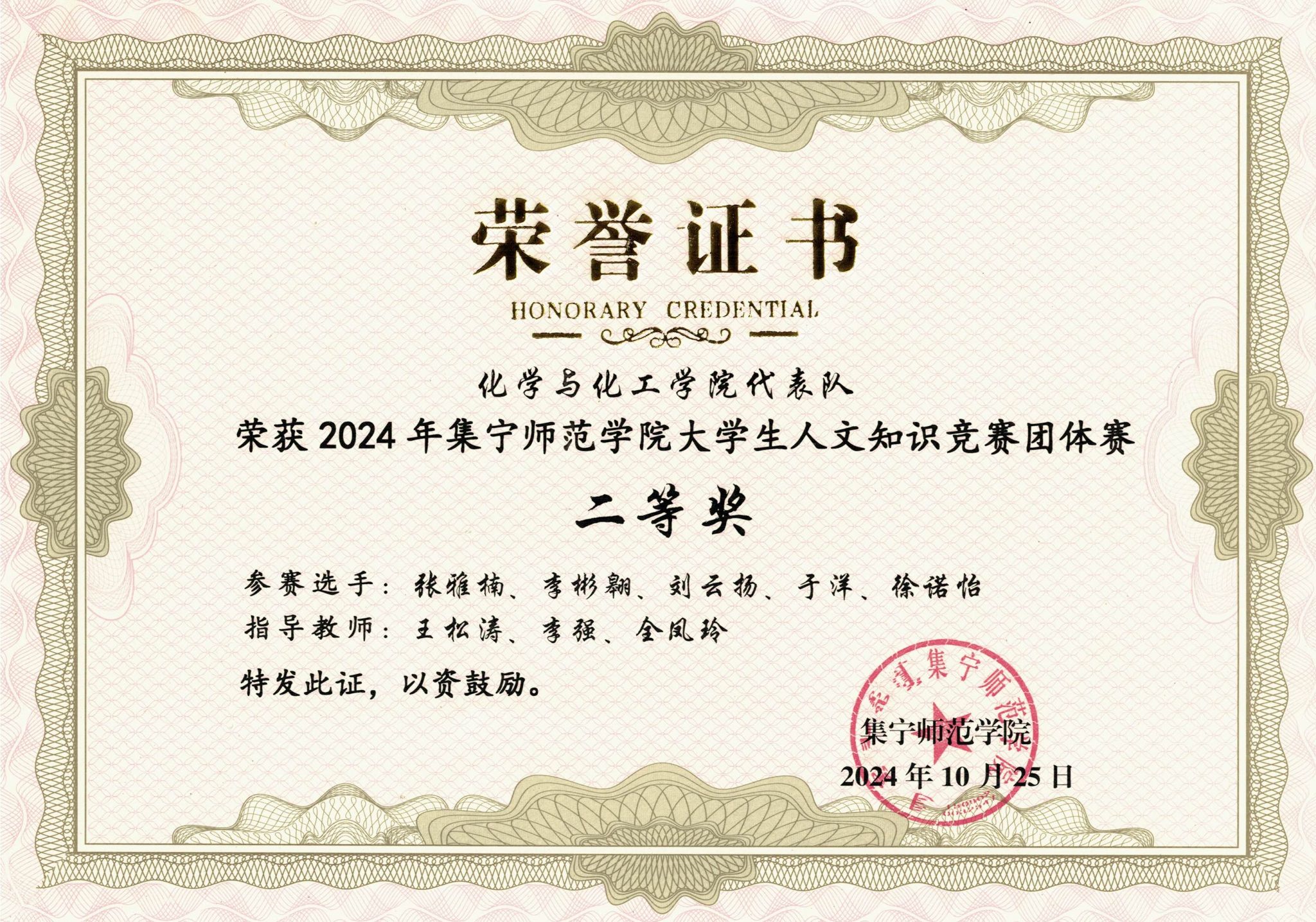 根据《关于举办2024年beat365在线唯一官网大学生人文知识竞赛活动的通知》要求,学校于10月16日和24日分别组织进行大学生人文知识竞赛个人赛决赛(团体赛预赛)和团体赛复赛。化学与化工学院学生经过精心准备在团体赛和个人赛中都取得了二等奖的好成绩。