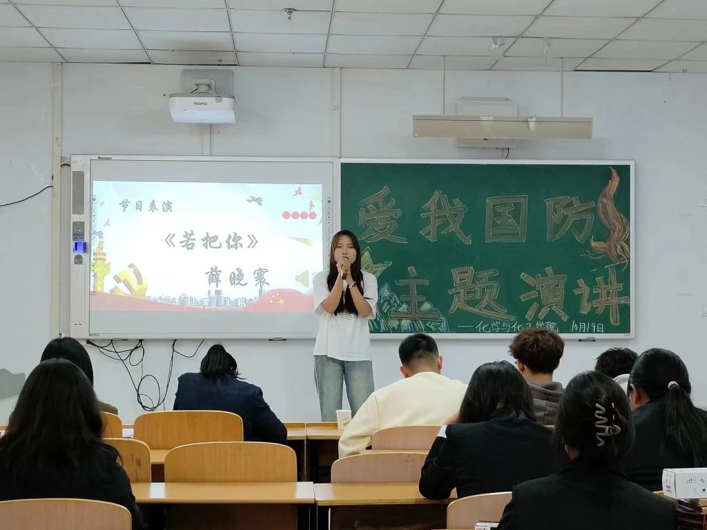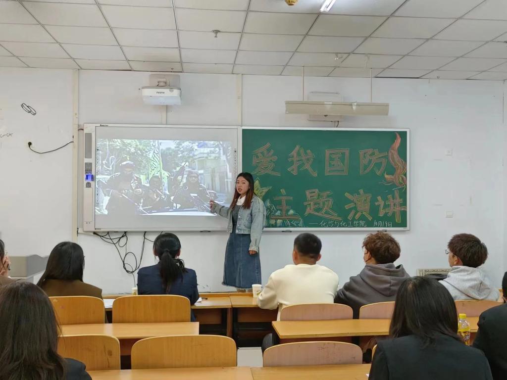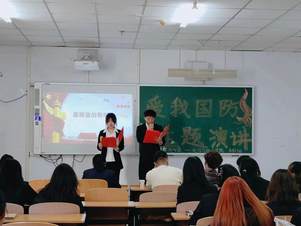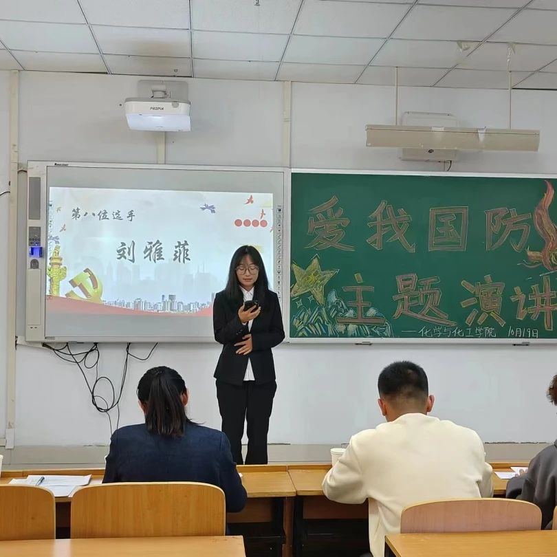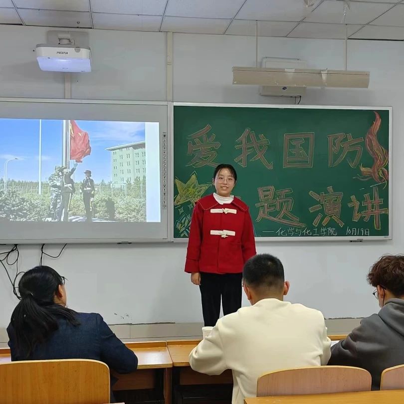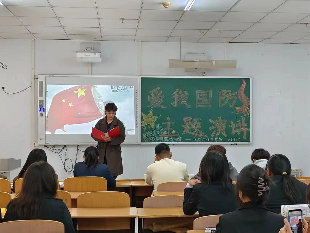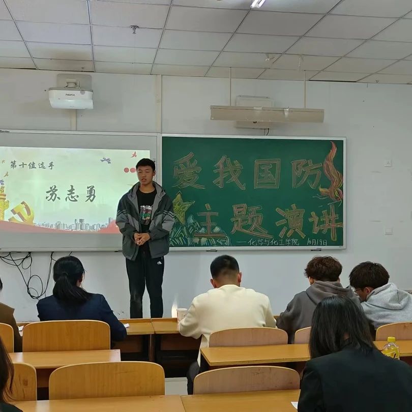 为进一步做好国防教育工作,激发学生热爱人民军队、矢志强国强军的政治热情,使关心国防、热爱国防、建设国防、保卫国防成为青年学生的思想共识和自觉行动,化学与化工学院于10月19日15:00,在逸夫楼103开展了“爱我国防”演讲比赛。比赛现场,参赛同学们用声情并茂的演讲,再现了国防故事中蕴含的精神力量,发人深省,情感真挚动人。