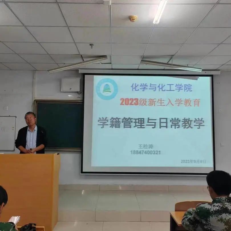 9月8日—9月9日每晚七点化学与化工学院副院长王松涛老师在逸夫楼2Y105与2023级化院全体新生进行入学教育。