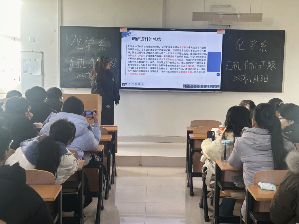 为进一步提高本科生学位论文质量和水平,加强本科生毕业论文过程管理,化学与化工学院于1月3-4日开展2025届化学、应用化学专业预毕业生学位论文开题答辩会。本次开题答辩会由化学系系主任吴亚丽、应用化学系系主任任庆云担任开题组长,学院全部本科生毕业论文指导教师及186名预毕业生参加汇报答辩。