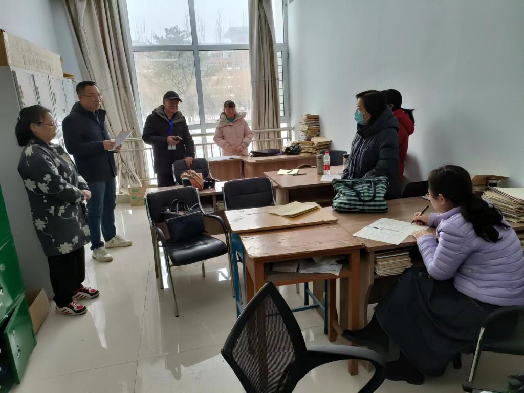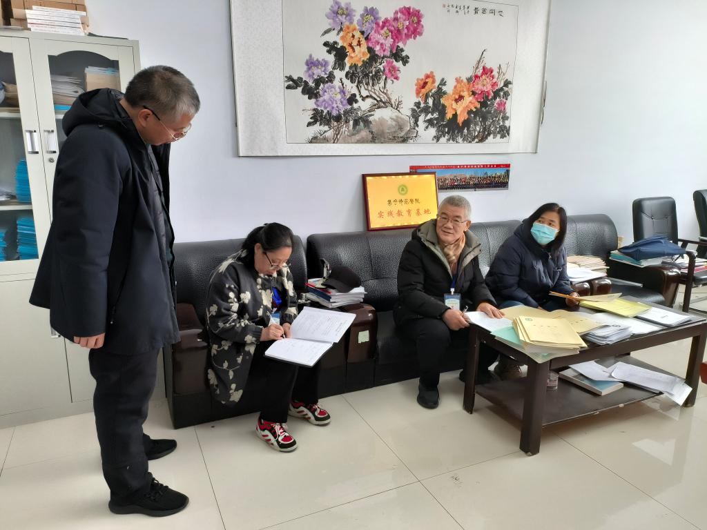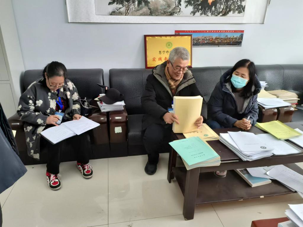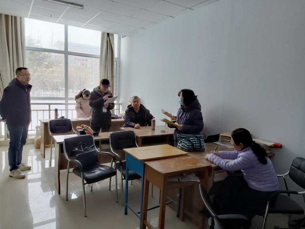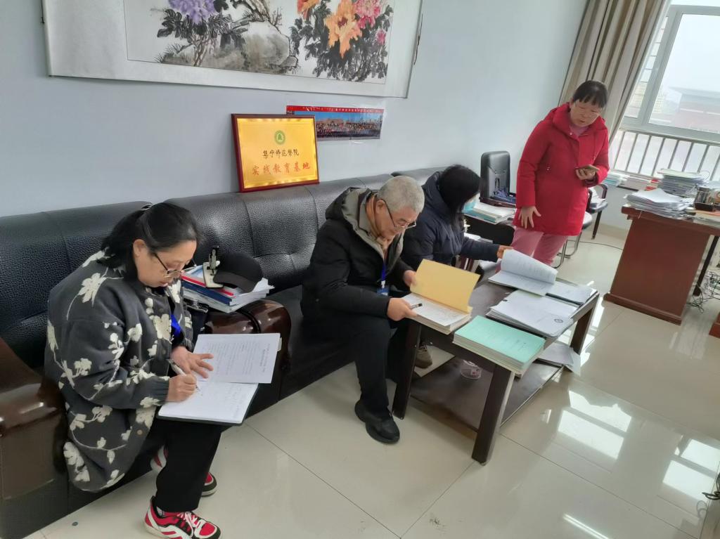 督导们在认真检查期初教学材料