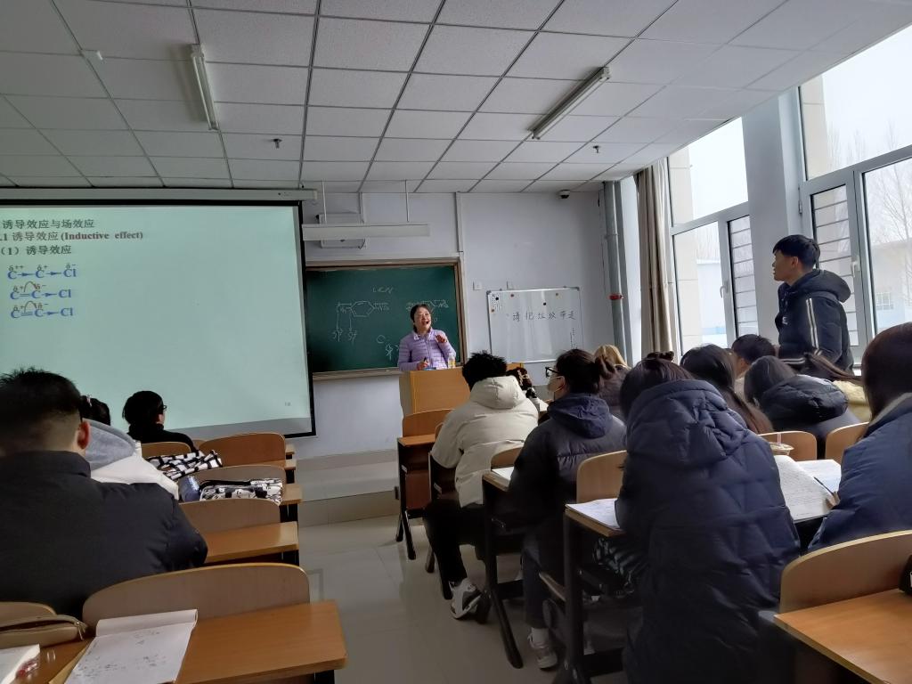 李东芳老师在上《有机选论》课及与学生互动