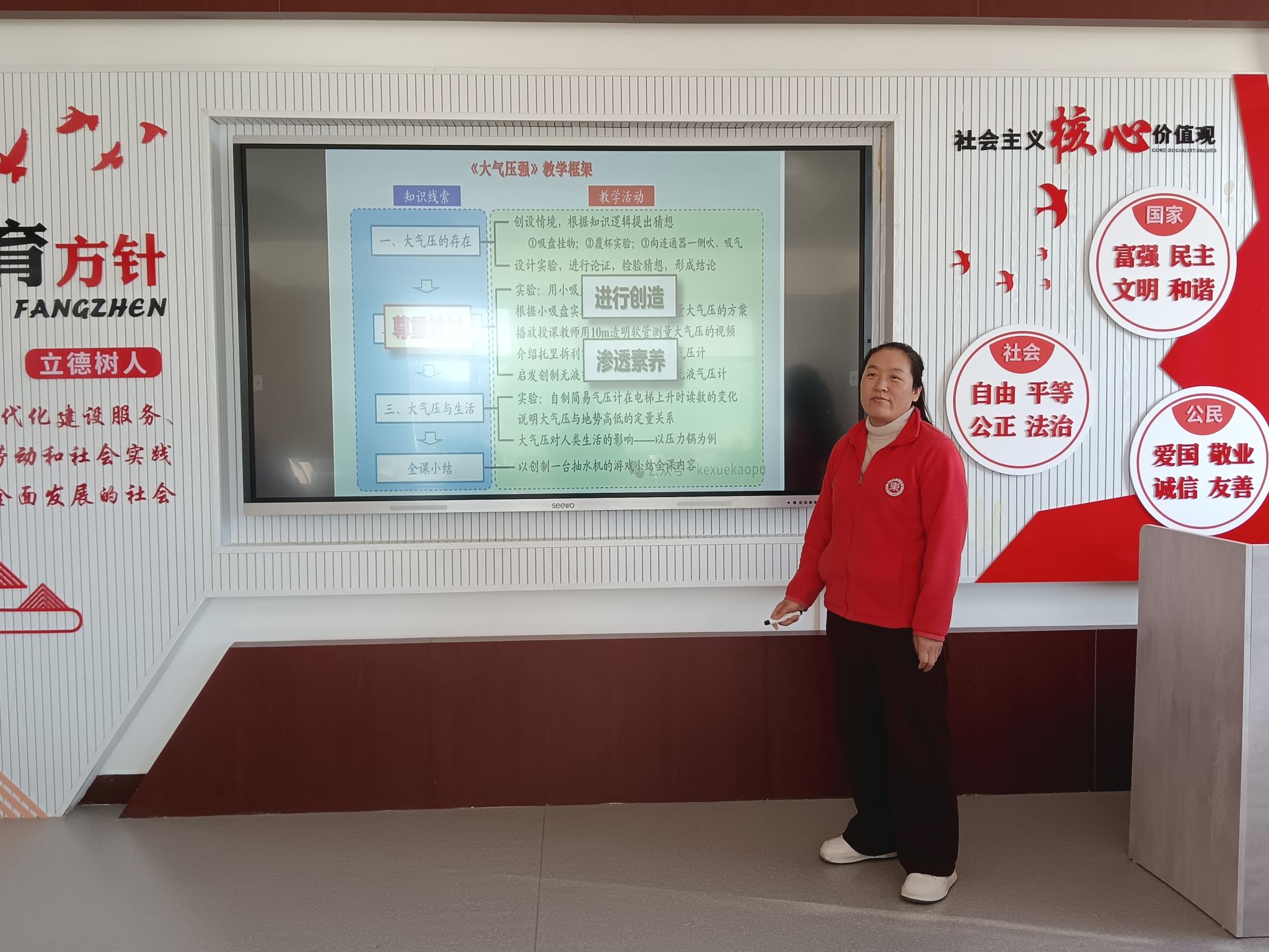 本次活动亿利东方学校常青校区高级教师宁霞分享了在赤峰市参加2024年“国培计划”旗(县)级中学骨干教师培训的心得,她从理论培训和跟岗培训两方面,详细分析了中学教师教研教改课题研究的策略、新授课教学内容框架设计、具体研究案例,对如何落实核心素养、思政课堂、大单元教学等谈了学习体会。