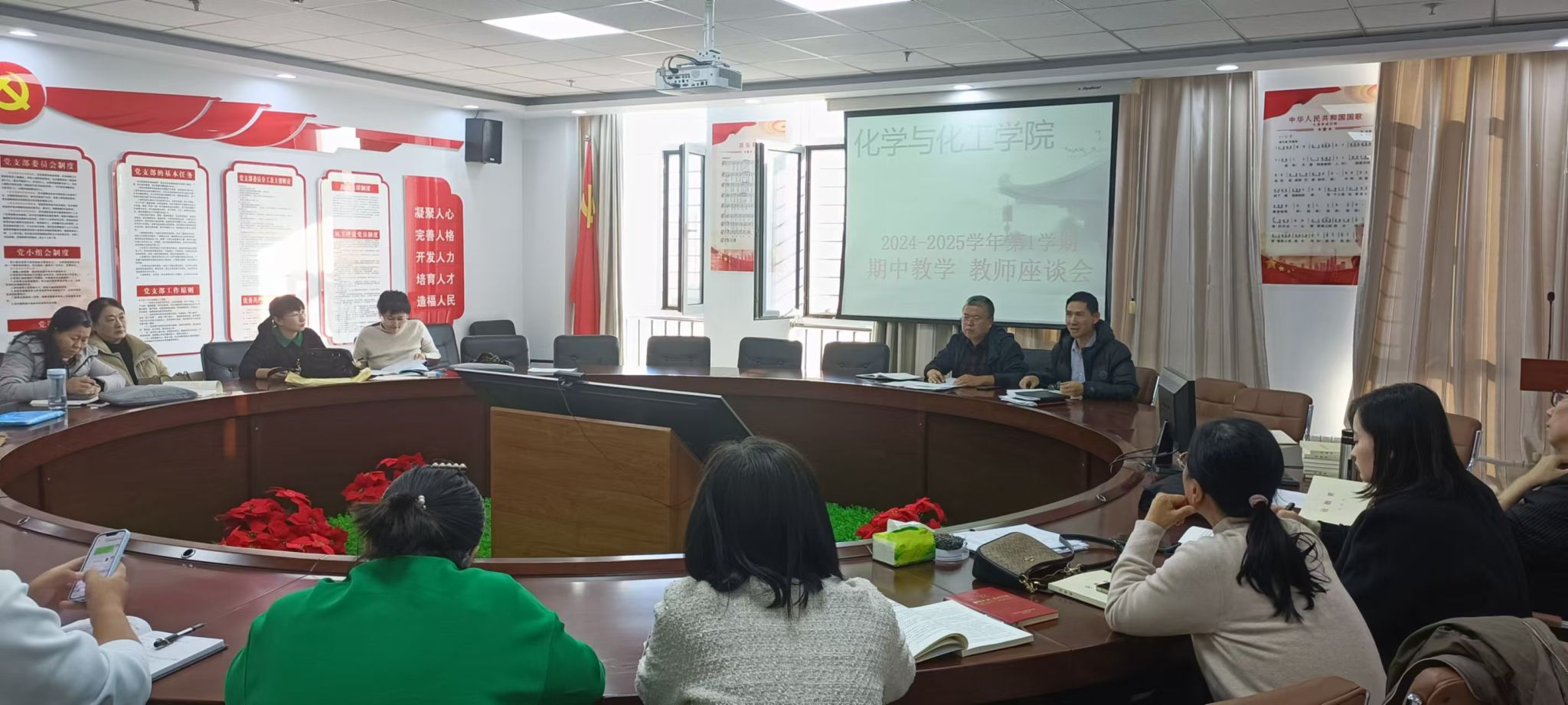 按照学校质评处“关于开展2024-2025学年第学期期中教学检查工作的通知要求,化学与化工学院于117日下午在逸夫楼701举行期中教学检查教师座谈会和学生座谈会。参加人员为学院领导班子成员、全体教师、2022级、2023级、2024级各班学生代表。