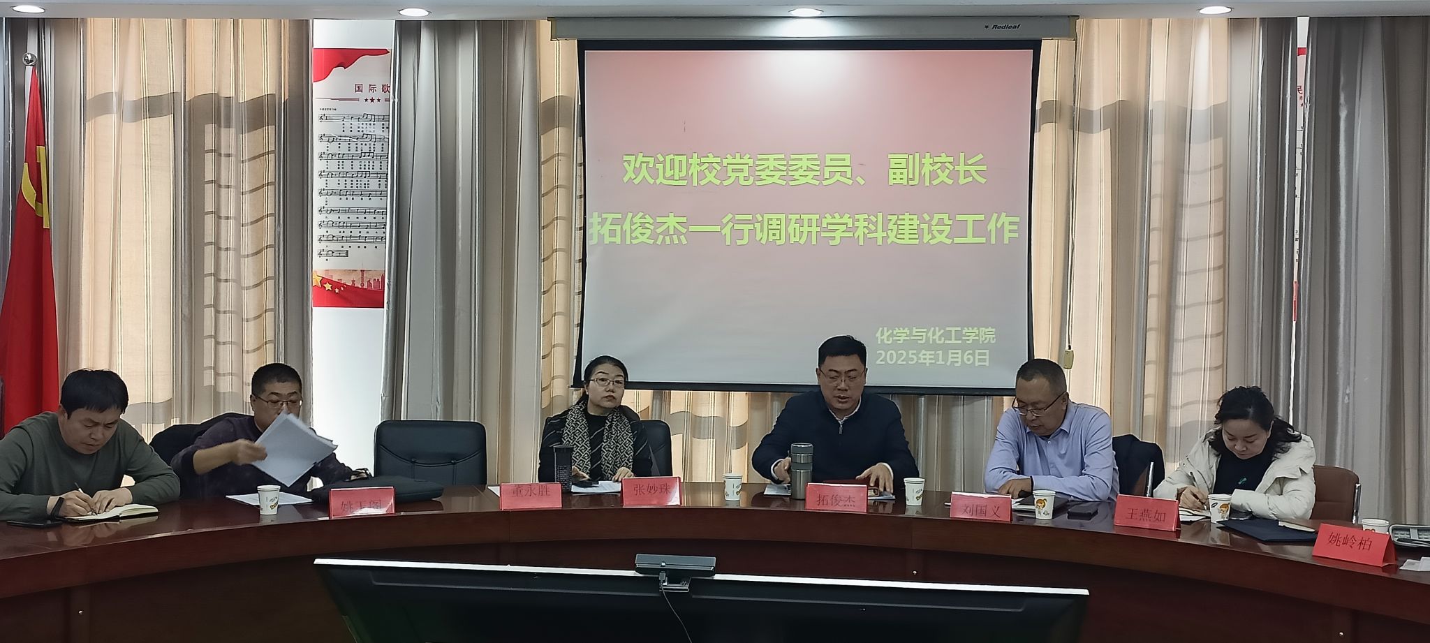 听取汇报后,拓俊杰对学院在学科建设和科研工作方面开展的工作和取得的成效给予了肯定,同时对学院下一步发展提出指导意见:一是要充分认识学科建设对学校高质量发展的重要性,要对标对表,逐项分解,制定实施计划;二是要充分激发学院教师开展科研的积极性;三是要营造氛围,想方设法提升科研申报项目的成功率,争取更大的进步。