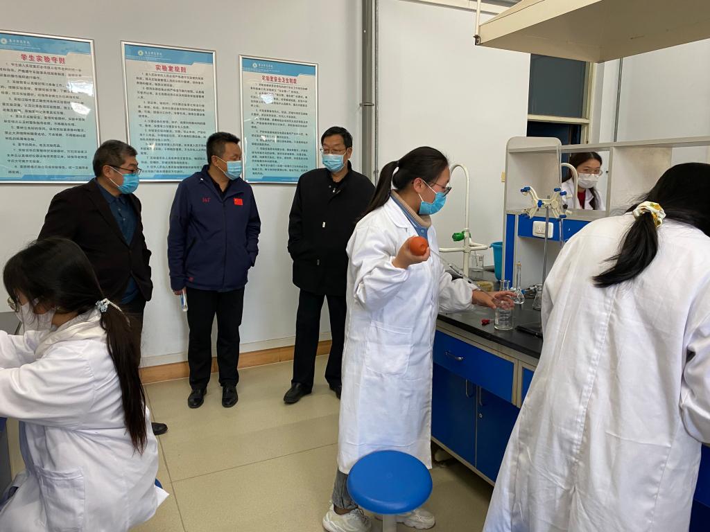 根据《教育部办公厅关于组织开展2021年度高等学校实验室安全检查工作的通知》和《关于组织开展2021年度内蒙古自治区高等学校实验室安全检查工作的通知》要求,10月26日,beat365在线唯一官网党委委员、副校长梁政,党委委员、科技处处长李平,教务处处长姚玉阁,化学与化工学院副院长徐松鹤一行对学校教学实验室、科研实验室、化学药品暂存室、实验废弃物暂存场所、重点危险源存放场所等进行了安全检查。