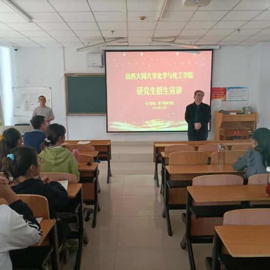 蒋尚对山西大同大学化学与化工学院作了介绍,并从师资队伍、软硬件设施、科研环境、生活环境、奖励机制等方面对研究生报考专业作了详细说明。