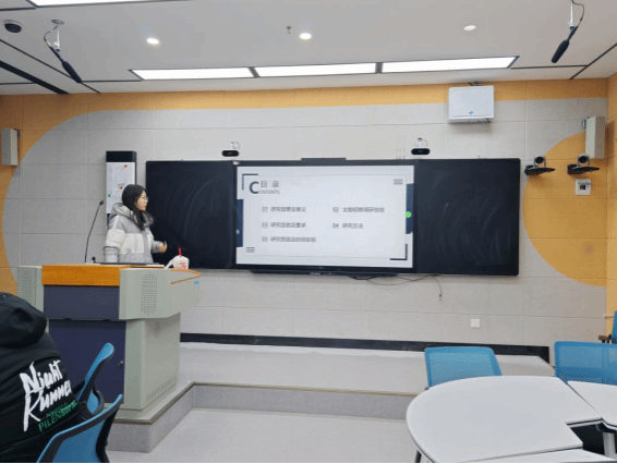 答辩过程中,学生们围绕研究课题,从选题背景和意义、主要研究内容、研究方法和预期成果等方面进行了汇报。汇报完毕后,答辩老师从论题的可行性、研究思路、研究方法等方面进行审核,并对研究问题是否聚焦、研究方法和手段是否全面及论文的创新性等方面给出了意见和改进建议。