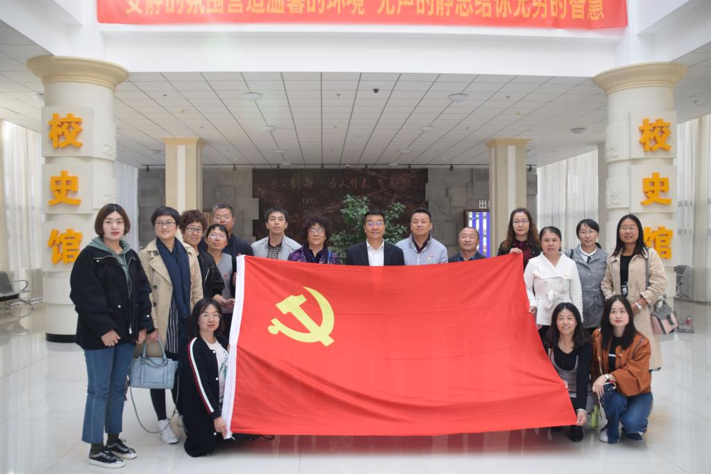 全体党员在校史馆重温入党誓词,在参观过程中,大家认真观看、积极讨论,从每一件展品中感受学校的历史与成果。