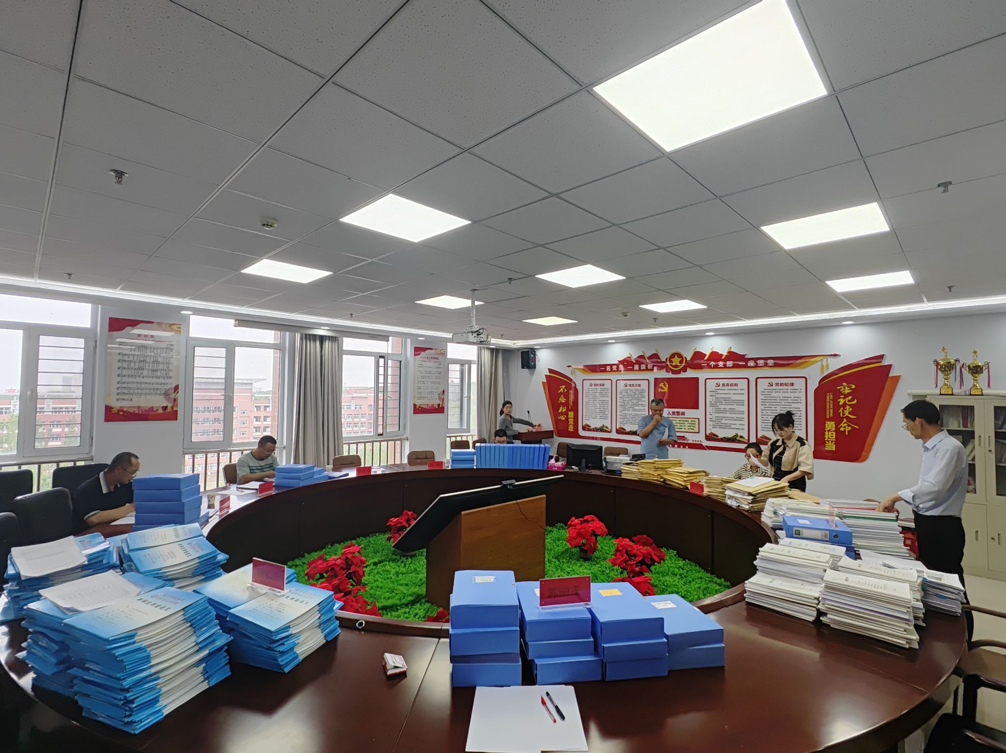 726日下午,校党委委员、副校长拓俊杰带队,对化学与化工学院教育教学审核评估材料开展第一轮检查。检查组组长高扬、成员马永强、张越、郭永兴、池小平、张大飞、郭丽雯对我院准备的审核评估学院自评报告及巡礼材料、支撑材料、课程教学材料、毕业论文材料、试卷、课程评估材料、专业评估材料、学院制度机制类文件及其他评估材料进行了认真细致的检查。