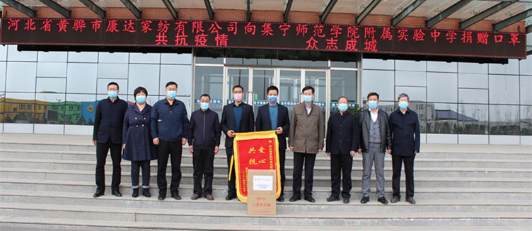 4月14日下午,河北省黄骅市康达家纺有限公司代表,来到beat365在线唯一官网附属实验中学滨河校区,将1000只一次性防护口罩捐赠给了学校。他们表示,听说学校复课,一直想为学校师生做点力所能及的事,捐赠这批口罩虽数量有限,但表达的是他们的一份心意。