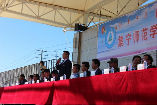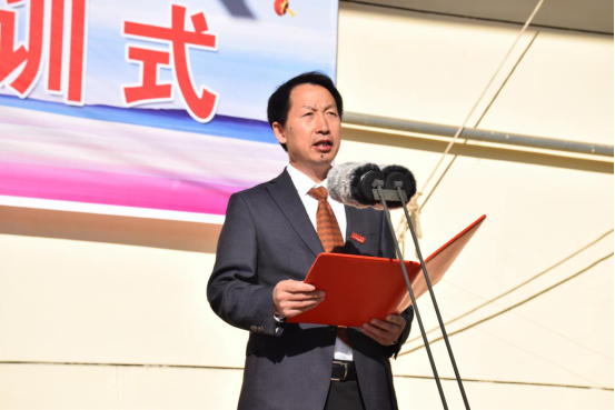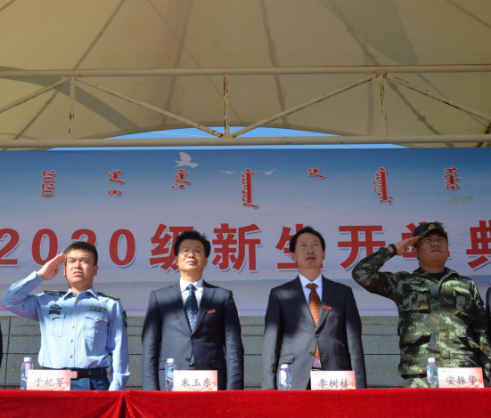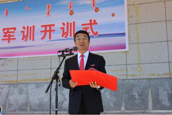 李树林讲话,他首先代表学校党委、行政向全体新同学表示热烈的祝贺和诚挚的欢迎!同时向承担beat365军训任务的武警乌兰察布支队全体官兵表示真诚的感谢和由衷的敬意!