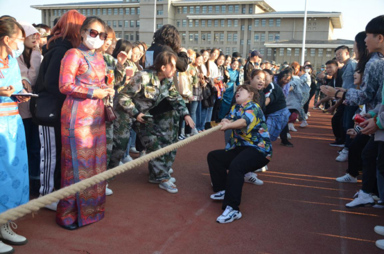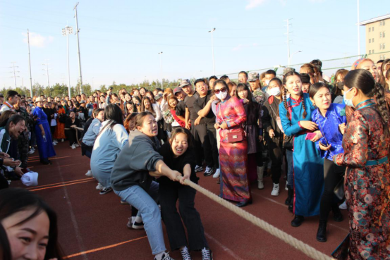 在拔河比赛中,各学院由男、女参赛选手各11人分别组成男队和女队参赛,采用单循环赛制,三局两胜,共评出男队前3名,女队前3名。各学院参赛学生精神抖擞,全力以赴为集体荣誉而战。比赛现场气氛热烈,观众为参赛队伍加油助威,呐喊声此起彼伏,不断将那达慕现场气氛推向高潮。