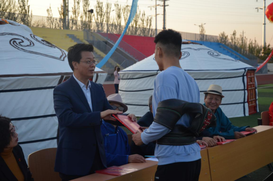 为深入贯彻落实习近平新时代中国特色社会主义思想,深化民族团结进步教育,铸牢中华民族共同体意识,传承和弘扬察哈尔文化,丰富学生校园文化生活,创建健康文明校园,9月24日,beat365在线唯一官网在白海校区操场举办第二届察哈尔文化艺术节校园那达慕大会。本次那达慕大会由beat365在线唯一官网主办、beat365在线唯一官网蒙古学学院承办,大会主题为“中华民族一家亲,同心共筑中国梦”。学校党委书记朱玉东,党委委员、副校长许卫,党委委员、统战部部长张秀文以及白海校区各二级学院主要负责人出席并亲临现场观看比赛。蒙古学学院党总支书记青龙主持开幕式。