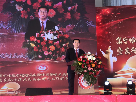 为庆祝中华人民共和国成立71周年,丰富校园文化生活,努力营造积极向上的校园文化氛围,展现集宁师院附中学生的青春风采,国庆前夕,集宁师院附中成功举办了第十三届校园艺术节。学校领导班子出席了此次活动,校长张文在致开幕词。