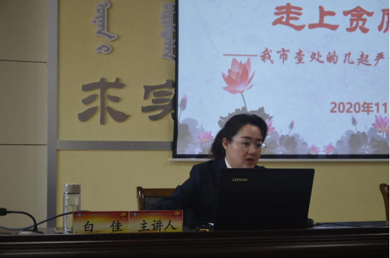 白佳以《背离初心使命,走上贪腐歧途》为题作专题讲座。白佳结合乌兰察布市纪委监委近年来查处的几起严重违纪违法案例以及违纪违法相关数据和近期中央纪委对高校监督执纪问责查处的案例进行了深入的剖析与讲解。白佳强调,全面从严治党永远在路上,党员及相关干部必须把严的主基调长期坚持下去,以永远在路上的执着和定力正风肃纪反腐,坚定不移地推动全面从严治党向纵深发展,担当起新时代赋予的新使命。要坚定理想信念,牢记职责使命;带头遵纪守法,秉公用权;强化制度建设,把监督挺在前面;注重个人修养,主动净化“朋友圈”,自觉抵制歪风邪气。白佳表示,高校承担着立德树人的根本任务,肩负着培养社会主义建设者和接班人的历史使命,在决策过程中需要更为严格和有效的监督制约,彻底杜绝权力滥用从而导致的腐败。高校党委要充分发挥领导作用,加强基层组织建设,落实全面从严治党主体责任,严肃处理违纪问题。高校纪委要在充分发挥监督责任的同时,结合实际监督、实际问责,运用好“四种形态”,进一步推动高校权力事项的公开力度,通过信息公开,降低腐败风险。