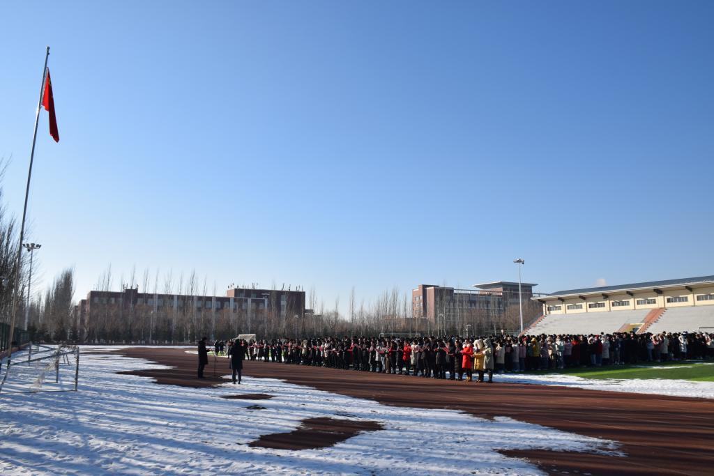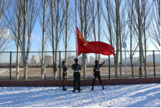 升旗仪式上,国旗护卫队的旗手们以饱满的热情,庄严地护卫五星红旗。伴随着雄壮有力的《义勇军进行曲》,鲜艳的五星红旗冉冉升起,在场所有师生集体行注目礼。