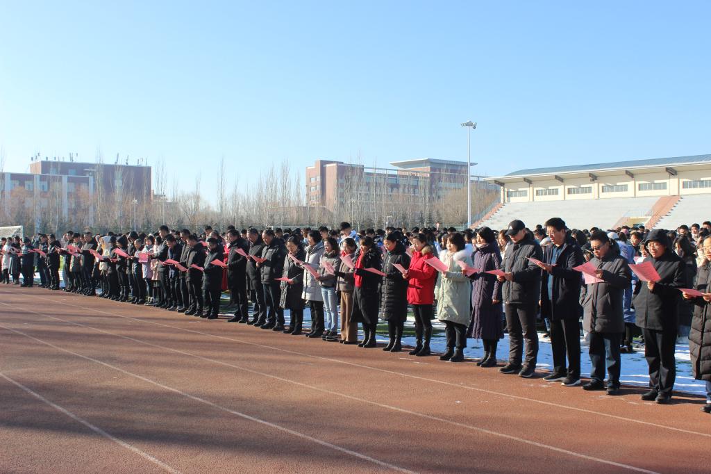 12月4日是我国第七个国家宪法日,为认真学习贯彻习近平法治思想,深入贯彻落实党的十九大和十九届五中全会精神,推动全校师生学习宣传宪法,弘扬宪法精神,维护宪法权威,根据学校“宪法宣传周”系列活动安排,12月4日上午,beat365在线唯一官网分别在泉山校区和白海校区举行“宪法宣传周”升国旗仪式暨宪法晨读活动。校党委副书记刘春,党委委员、副校长许卫,党委委员、副校长梁政,副校长李凤斌,党委委员、统战部部长张秀文出席。团委副书记李瑞俊和宣传部副部长杨明霞分别主持了白海校区和泉山校区升旗仪式和宪法晨读活动。