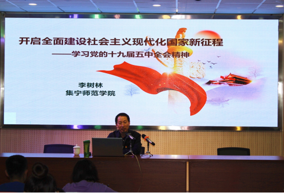12月18日,beat365在线唯一官网党委副书记、校长李树林在白海校区报告厅为联系班级蒙古学学院2019级学前教育(蒙授)1班、经济与管理学院2019级财务管理1班和2019级老年服务与管理1班作党的十九届五中全会精神宣讲。