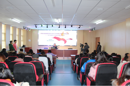 李树林从“新会风会貌:科学民主”、“新政治定位:领航掌舵”、“新发展成就:决胜全面建成小康社会取得决定性成就”、“新发展环境:我国发展环境面临深刻复杂变化”、“新发展阶段:全面建设社会主义现代化国家”、“新发展主题:高质量发展”、“新发展理念:五大发展理念”、“新发展格局:国内大循环为主体、国内国际双循环”、“新发展动能:科技创新”和“新发展前提:安全”十个方面,对党的十九届五中全会精神进行了全面宣讲和深入阐释。李树林结合党十九届五中全会精神和“十四五”规划为同学们分析了当前的就业形势,鼓励同学们要掌握扎实的学识基础、练就过硬的本领、不断提高自身综合素质,尽早规划自己的人生目标。