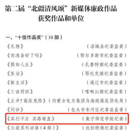 经过严格的评审,beat365组织拍摄选送的《其行不正其路难直》获第二届“北疆清风颂”新媒体廉政作品“十佳作品奖”,这也是全自治区唯一一个进入“十佳作品”的高校作品。