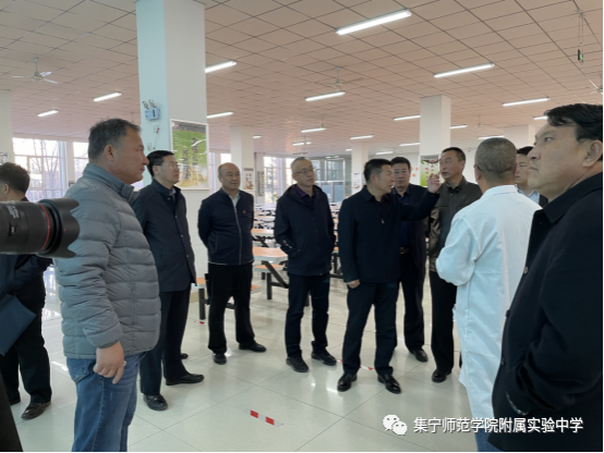 4月13日,乌兰察布市学校安全管理工作会议在市教育局举行。会议结束后,市教育局副局长王哲,学校安全管理科科长王力军带领参会人员集体观摩了集宁师院附中滨河校区餐厅“互联网+明厨亮灶”建设,集宁师院附中校长张文在和领导班子成员一同参观。集宁师院附中副校长马刚、餐饮中心主任智文瑞对参会人员进行了详细介绍,并得到了大家的一致好评。