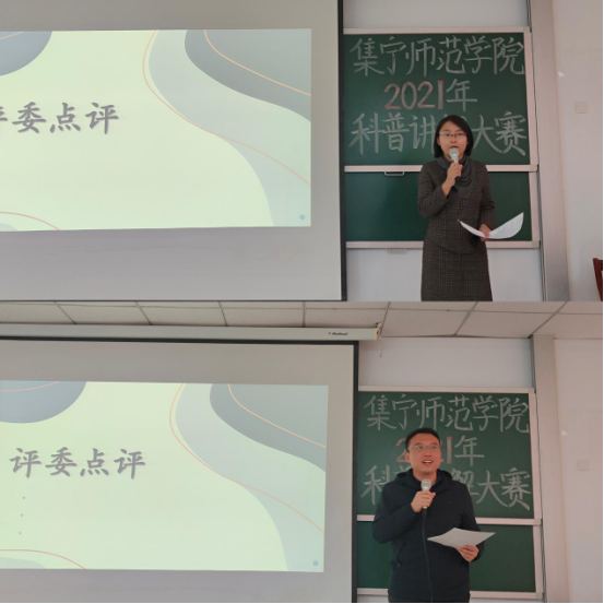 评委徐松鹤从选手的内容讲解、PPT制作方面做了点评。评委庞凤琴从语言表达、整体形象方面做了点评。