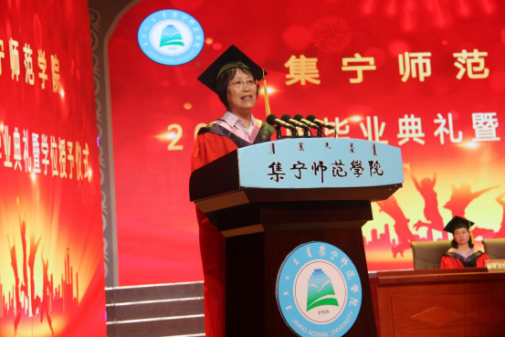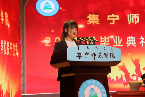 教育科学学院2018级学生白茹作为在校生代表进行发言,她首先向各位毕业的学长学姐表示祝贺,感谢他们在新生入学后给予的帮助和引导。她说:“希望各位学长学姐无论走向何方,都要携带母校的祝福,恩师的期望和学弟学妹们的祝福,勇往直前,去追求平凡中的崇高,奋力搏击,永不言败,在新的征程中扬起一片胜利的风帆”。