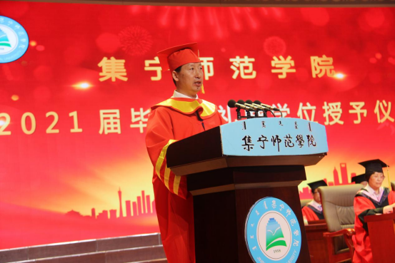 外国语学院院长闫晓云代表全体教师向圆满完成学业的2021届毕业生表示热烈的祝贺。希望同学们做一个思考者、学习者、奋斗者,在时代的感召下,不负使命的境界和担当,不断丰富自己,完善自己,做到知行合一,在实现中华民族伟大复兴征程中砥砺前行,创造辉煌。