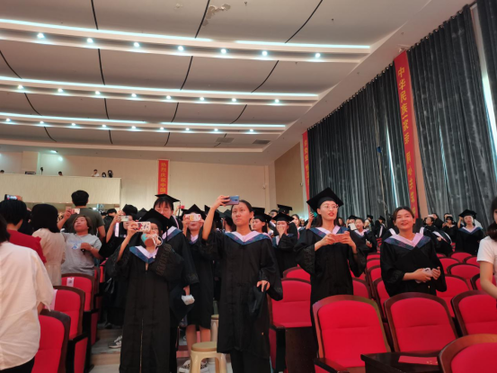 毕业典礼暨学位授予仪式在雄壮的国歌声中正式拉开帷幕。梁政宣读2021届毕业生名单及授予学位的决定。